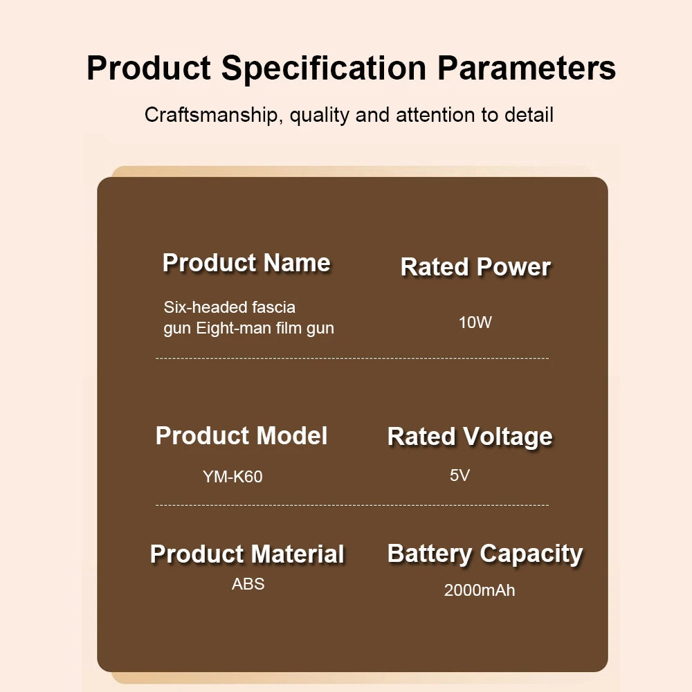 Six Professional Massage Heads – Targets large muscles, joints, fascia, and sensitive areas.